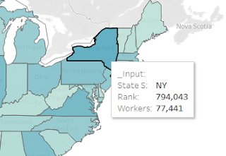 Compared to that of New York's darker-shaded state, showing a much more significant ranking of 794,043 and 77k plus workers.